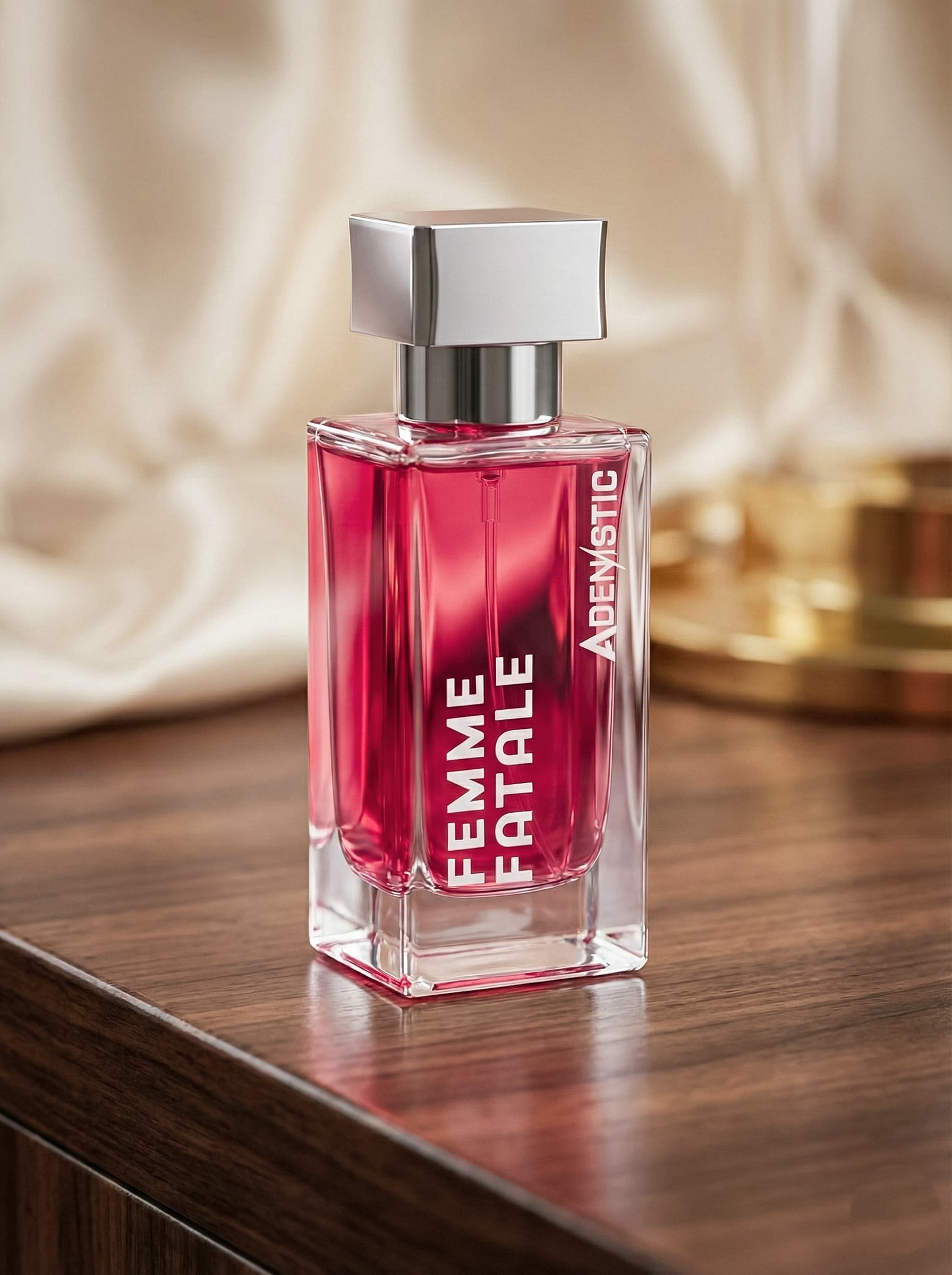 Bright, graceful, and confidently feminine, Adenistic Femme Fatale reflects charm, strength, and natural elegance. The opening unfolds with the crisp floral brightness of apple blossom and camellia, lifted by a burst of zesty mandarin., while the heart reveals gentle floral notes with a subtle coolness that enhances clarity and balance.